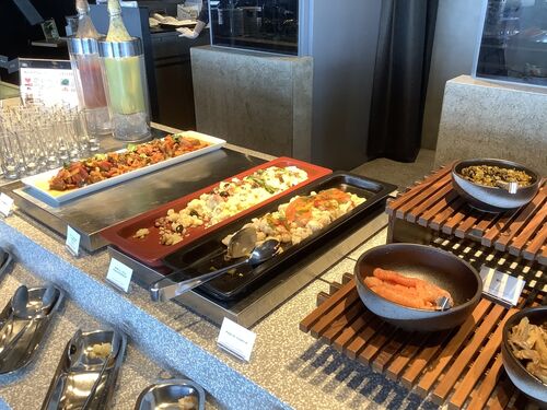 JGC修行その④ 2日目は、福岡空港から羽田空港への✈️往復です! 今日は、アップグレードの必要がないので、ホテルでゆっくり朝食をいただきます♪ 福岡らしい内容のバイキングが並んでいます♪ ご飯のお供が特に美味しかった。 朝食のレストランからも、福岡の…