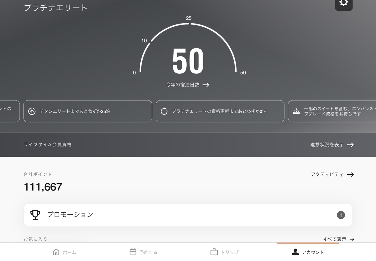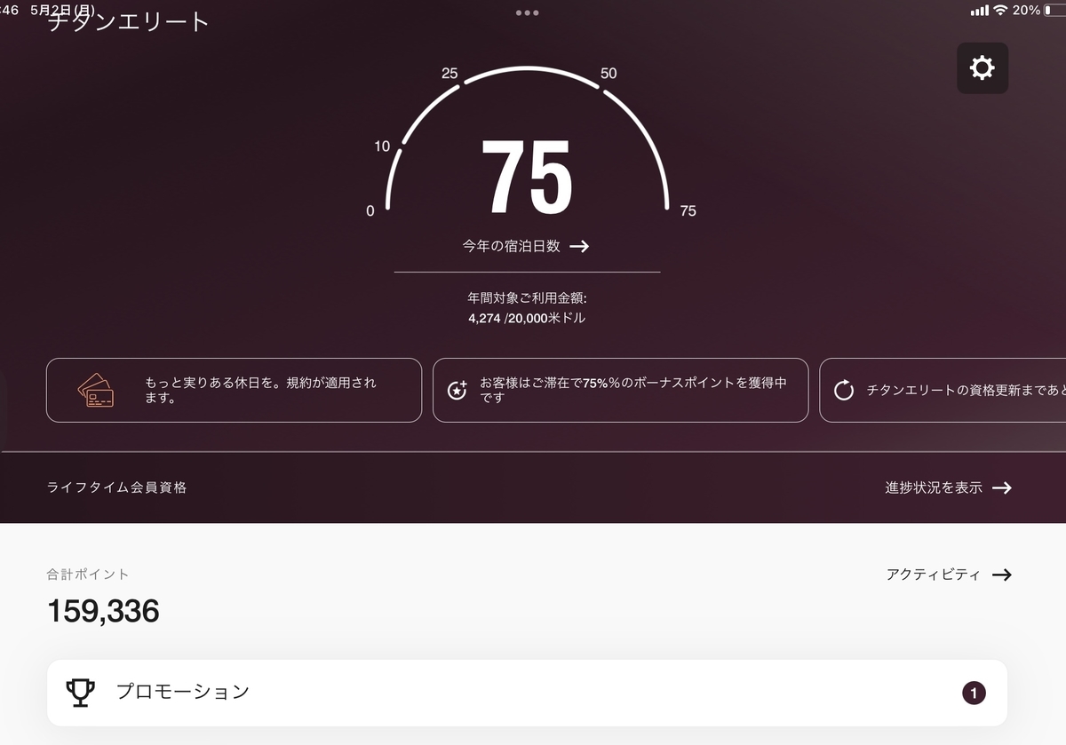 めでたく、75泊でチタンエリートを獲得できました!