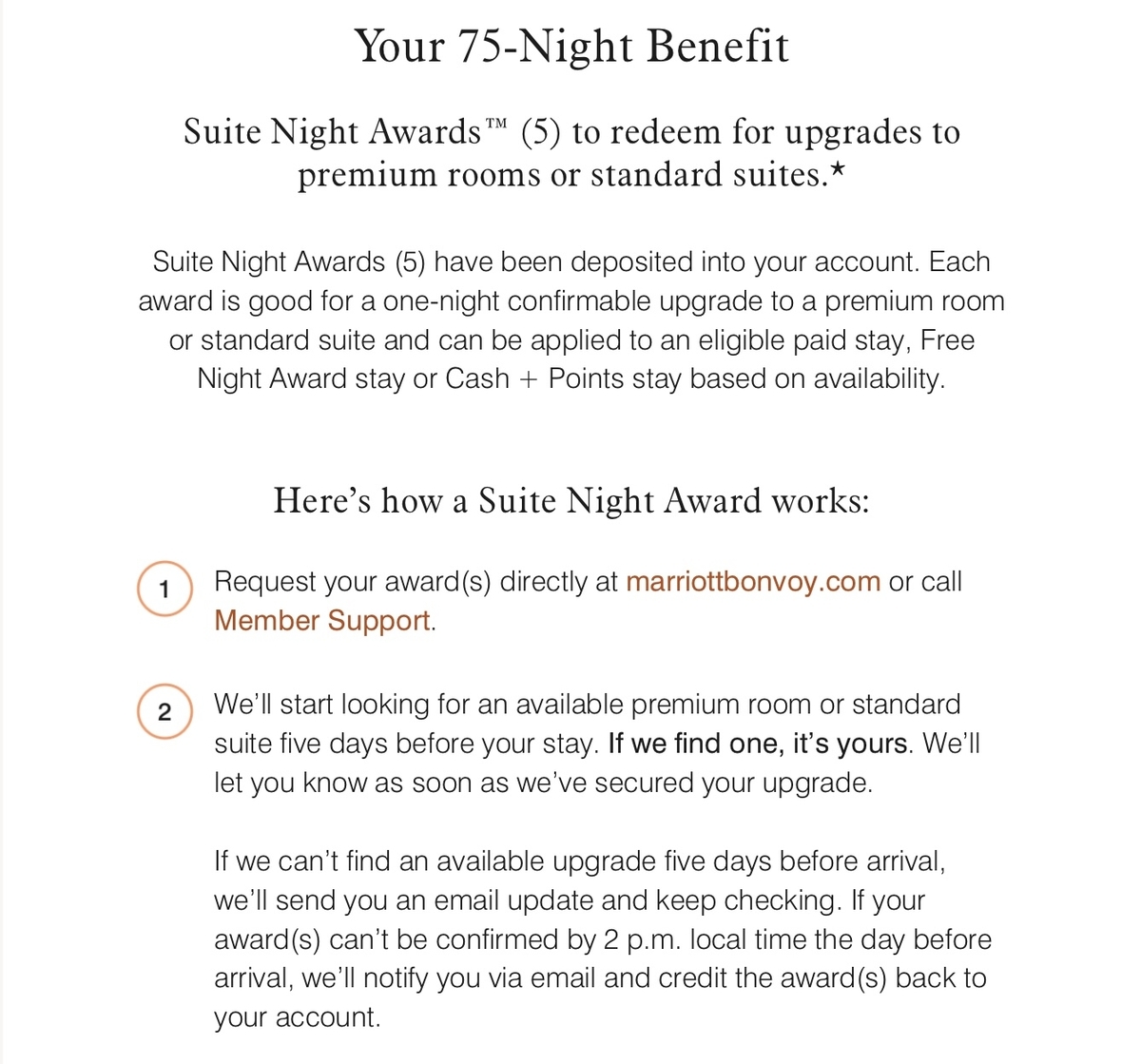 マリオットでは、年間50泊と75泊を達成すると、