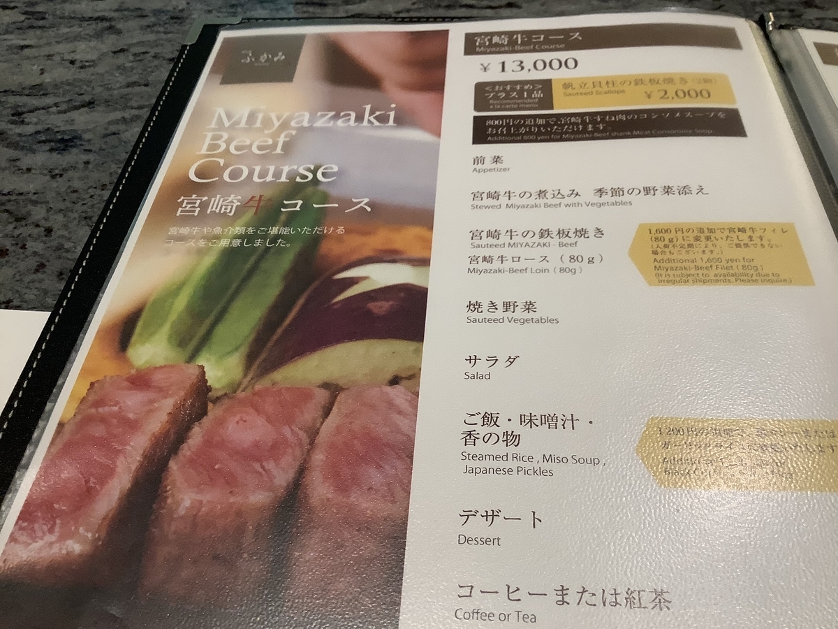 奮発して宮崎ビーフのコースをいただくことにしました!