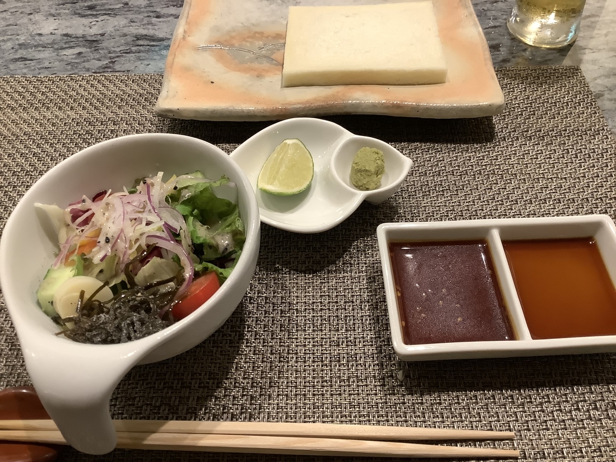 サラダとステーキのタレが来ました!