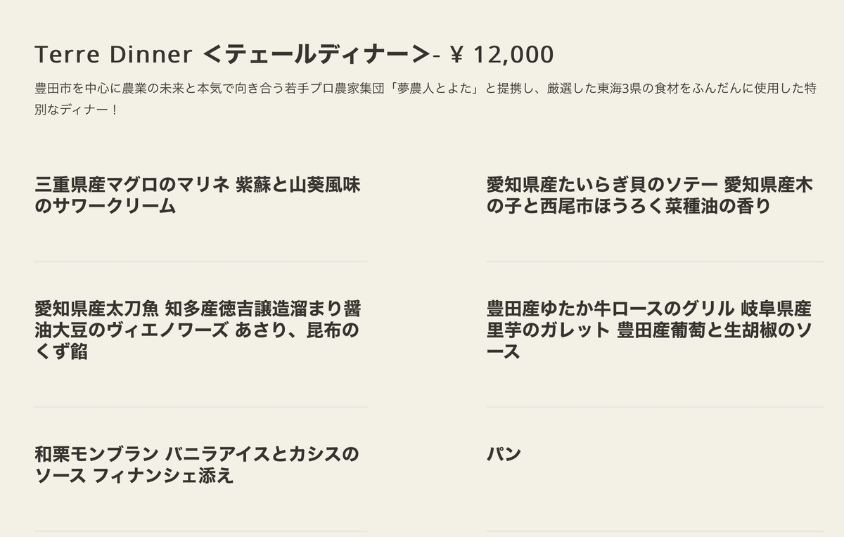 地元の食材でコース料理テェールディナーをいただきます🍽