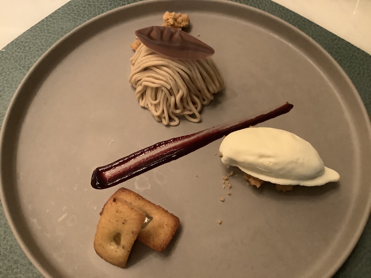 デザートは和栗のモンブランとバニラアイス、大好物です♪
