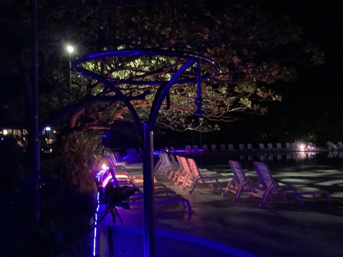 夜のプールがライトアップ♪