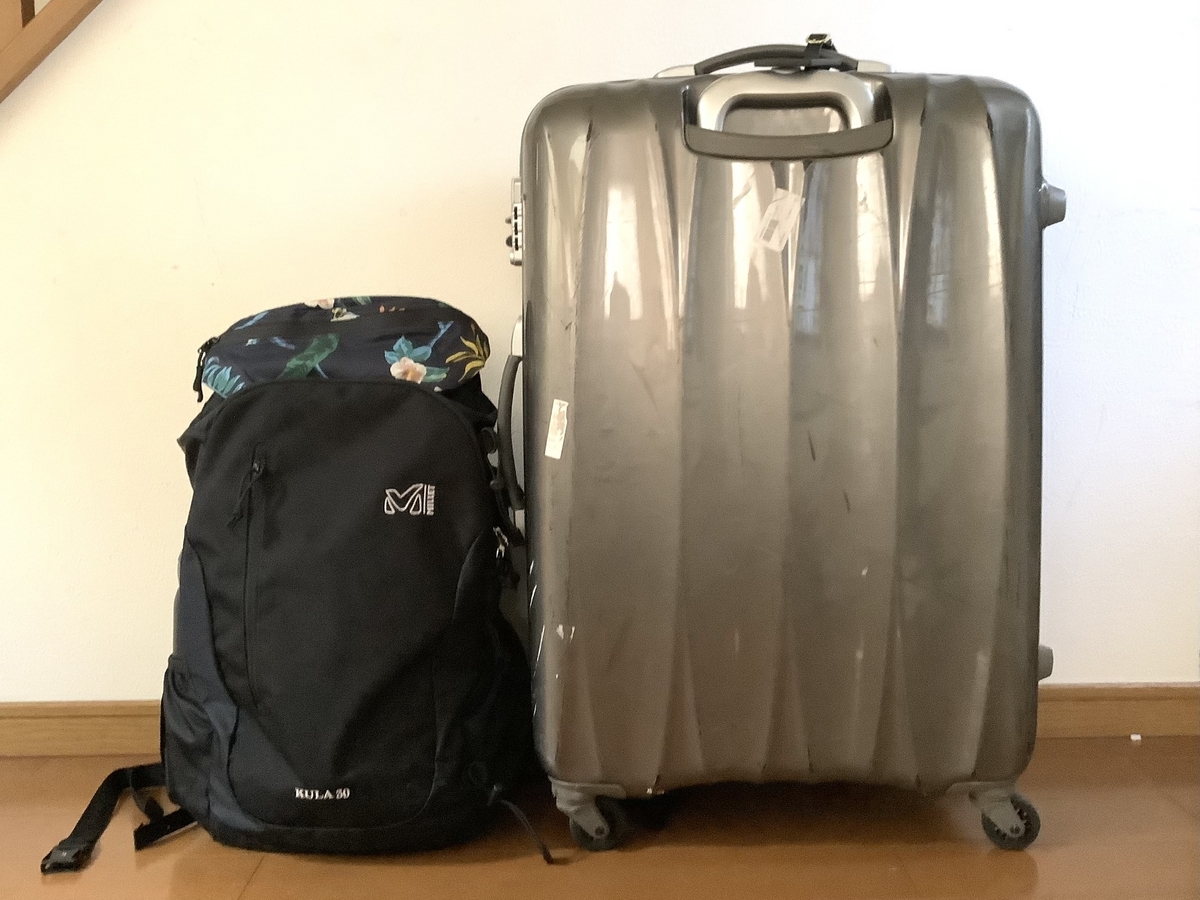 スーツケースとバックパック、バックパックはアルペンで相談して、