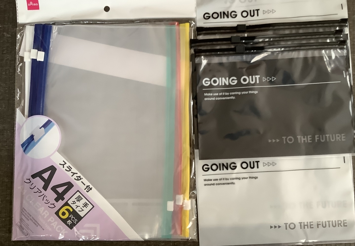 クリアファイルは2種類の大きさ、Eチケット控やレシートの整理