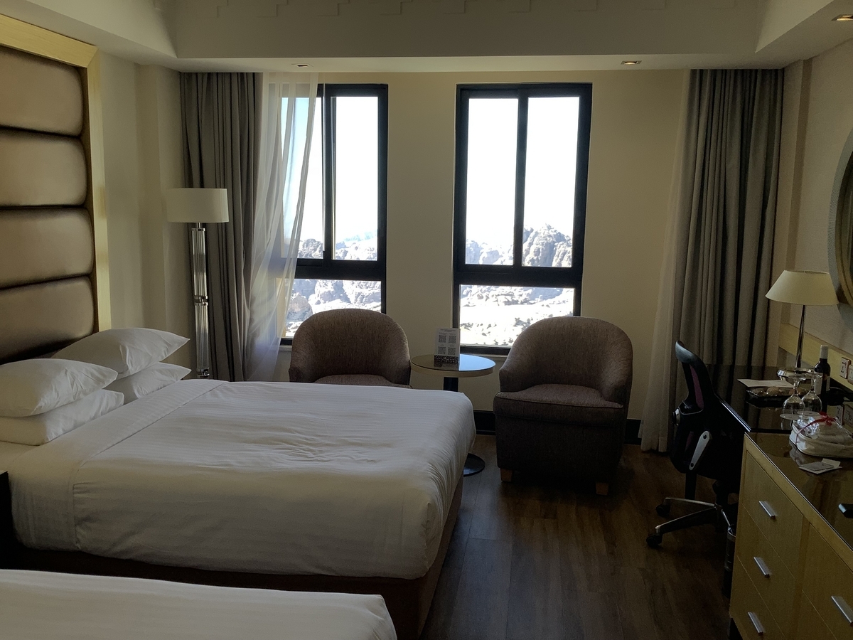 ホテルのマネージャーさんが出迎え、最上階のペトラバレービューにアップグレード!